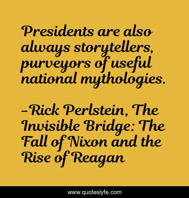 "Rick Perlstein, The Invisible Bridge: The Fall of Nixon and the Rise of Reagan Quotes." Quoteslyfe.com, 2025. Sun. 07 Dec. 2025. <https://www.quoteslyfe.com/quote/Presidents-are-also-always-storytellers-purveyors-of-48175>.