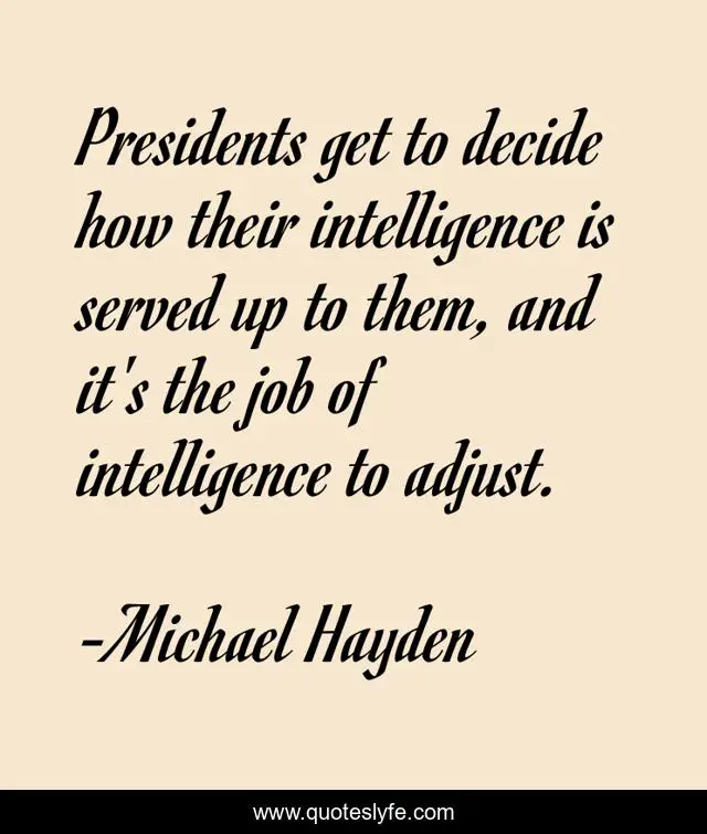 "Michael Hayden Quotes." Quoteslyfe.com, 2025. Mon. 08 Dec. 2025. <https://www.quoteslyfe.com/quote/Presidents-get-to-decide-how-their-intelligence-298520>.