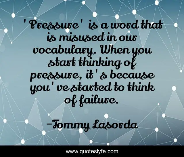 This page presents the quote "'Pressure' is a word that is misused in our vocabulary. When you start thinking of pressure, it's because you've started to think of failure.". Author of this quote is Tommy Lasorda. This quote is about thinking, start, pressure,.