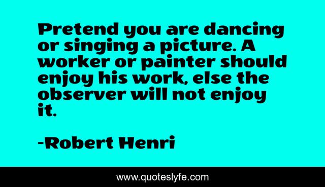 This page presents the quote "Pretend you are dancing or singing a picture. A worker or painter should enjoy his work, else the observer will not enjoy it.". Author of this quote is Robert Henri. .