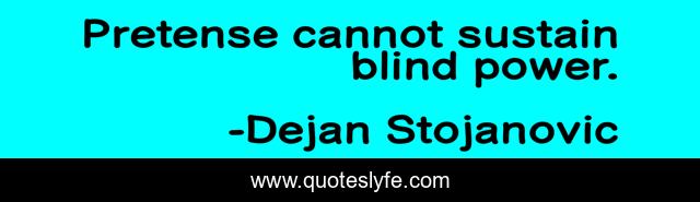 This page presents the quote "Pretense cannot sustain blind power.". Author of this quote is Dejan Stojanovic. This quote is about literature, blind-power, power, dejan-stojanovic, poetry, wisdom, quotes, quotes-to-live-by, pretense,.
