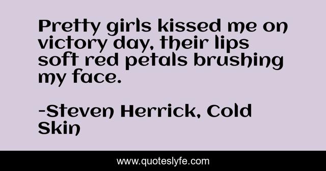 This page presents the quote "Pretty girls kissed me on victory day, their lips soft red petals brushing my face.". Author of this quote is Steven Herrick, Cold Skin. This quote is about victory-day, pretty-girls, face, lips, kiss, red-petals,.