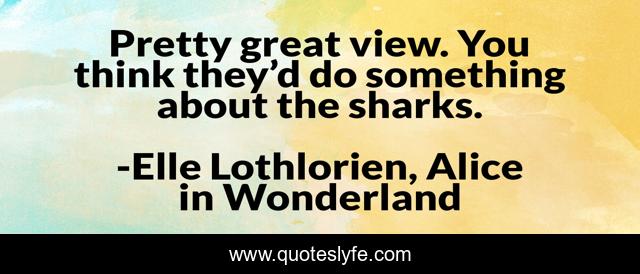 This page presents the quote "Pretty great view. You think they’d do something about the sharks.". Author of this quote is Elle Lothlorien, Alice in Wonderland. .