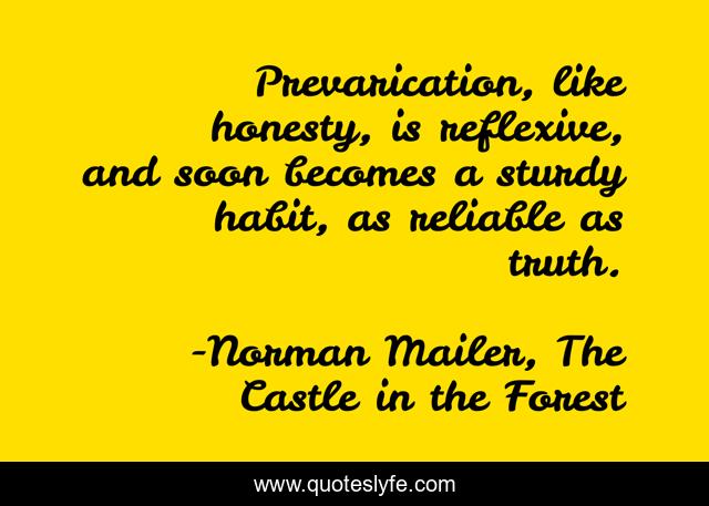 This page presents the quote "Prevarication, like honesty, is reflexive, and soon becomes a sturdy habit, as reliable as truth.". Author of this quote is Norman Mailer, The Castle in the Forest. .