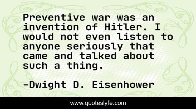 "Dwight D. Eisenhower Quotes." Quoteslyfe.com, 2025. Fri. 05 Dec. 2025. <https://www.quoteslyfe.com/quote/Preventive-war-was-an-invention-of-Hitler-52514>.