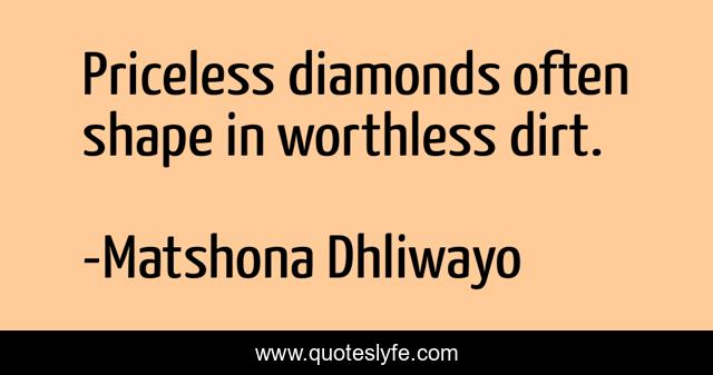 "Matshona Dhliwayo Quotes." Quoteslyfe.com, 2025. Fri. 05 Dec. 2025. <https://www.quoteslyfe.com/quote/Priceless-diamonds-often-shape-in-worthless-dirt-109080>.