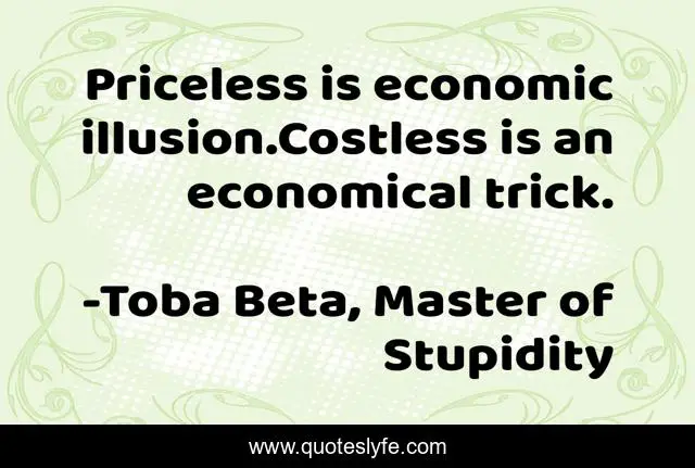 "Toba Beta, Master of Stupidity Quotes." Quoteslyfe.com, 2025. Mon. 08 Dec. 2025. <https://www.quoteslyfe.com/quote/Priceless-is-economic-illusion-Costless-is-an-235304>.