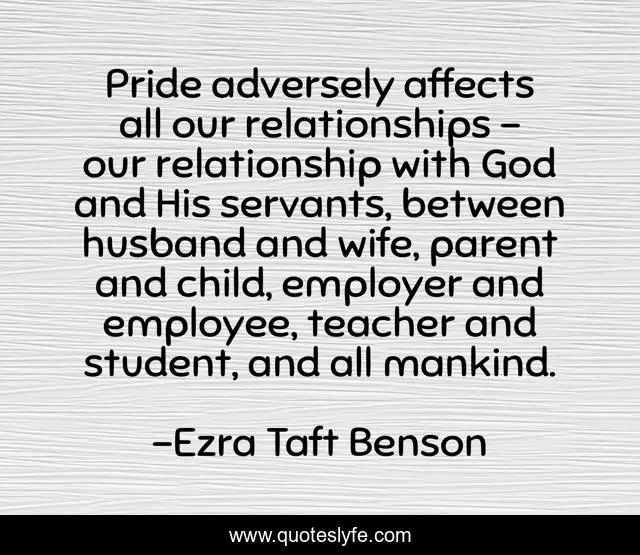 "Ezra Taft Benson Quotes." Quoteslyfe.com, 2025. Fri. 05 Dec. 2025. <https://www.quoteslyfe.com/quote/Pride-adversely-affects-all-our-relationships-our-293299>.