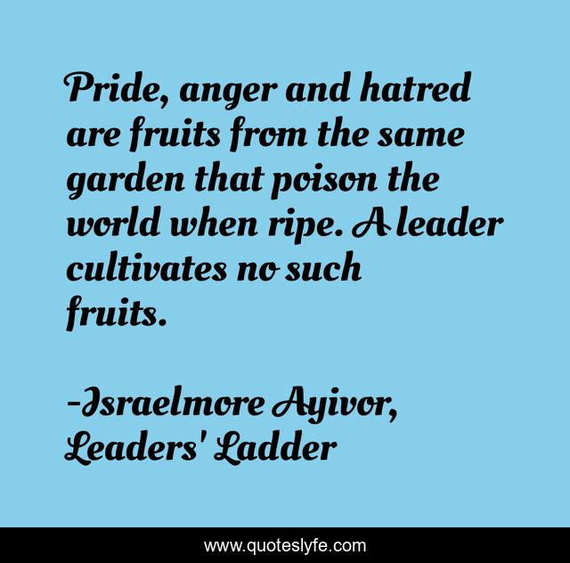 "Israelmore Ayivor, Leaders' Ladder Quotes." Quoteslyfe.com, 2025. Fri. 05 Dec. 2025. <https://www.quoteslyfe.com/quote/Pride-anger-and-hatred-are-fruits-from-65054>.