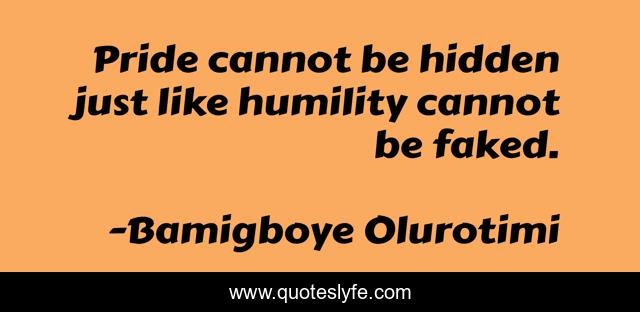 This page presents the quote "Pride cannot be hidden just like humility cannot be faked.". Author of this quote is Bamigboye Olurotimi. This quote is about life, false, humility, choice, fake, hide, hidden, pride,.