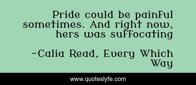This page presents the quote "Pride could be painful sometimes. And right now, hers was suffocating". Author of this quote is Calia Read, Every Which Way. .