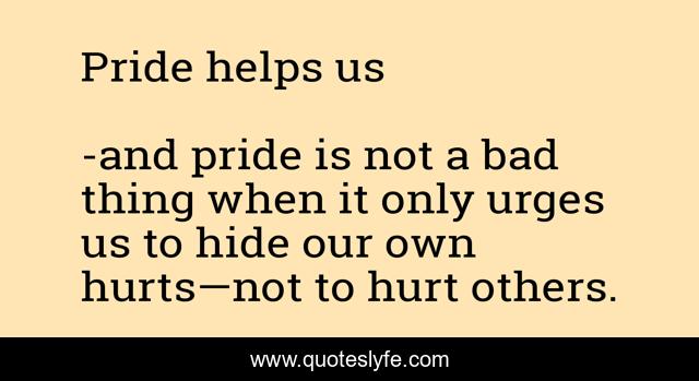 Check all other quotes by and pride is not a bad thing when it only urges us to hide our own hurts—not to hurt others.