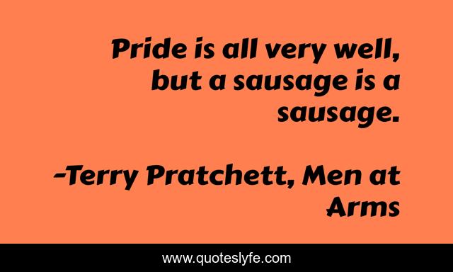 This page presents the quote "Pride is all very well, but a sausage is a sausage.". Author of this quote is Terry Pratchett, Men at Arms. This quote is about food, pride, humor, dogs,.