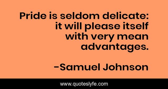 This page presents the quote "Pride is seldom delicate: it will please itself with very mean advantages.". Author of this quote is Samuel Johnson. .