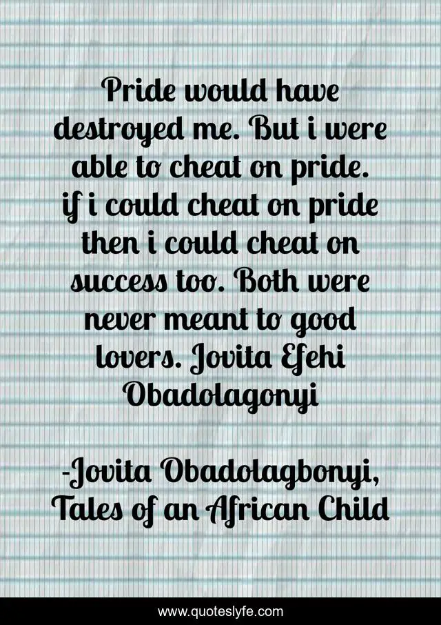 Pride would have destroyed me. But i were able to cheat on pride. if i could cheat on pride then i could cheat on success too. Both were never meant to good lovers. Jovita Efehi Obadolagonyi