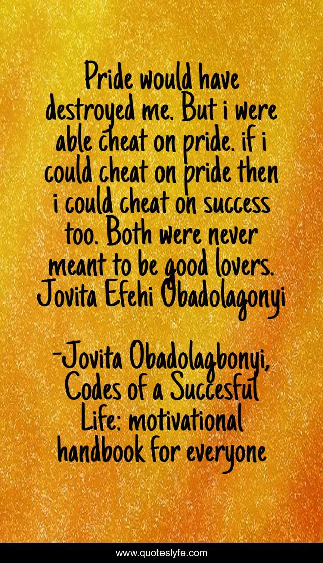 Pride would have destroyed me. But i were able cheat on pride. if i could cheat on pride then i could cheat on success too. Both were never meant to be good lovers. Jovita Efehi Obadolagonyi