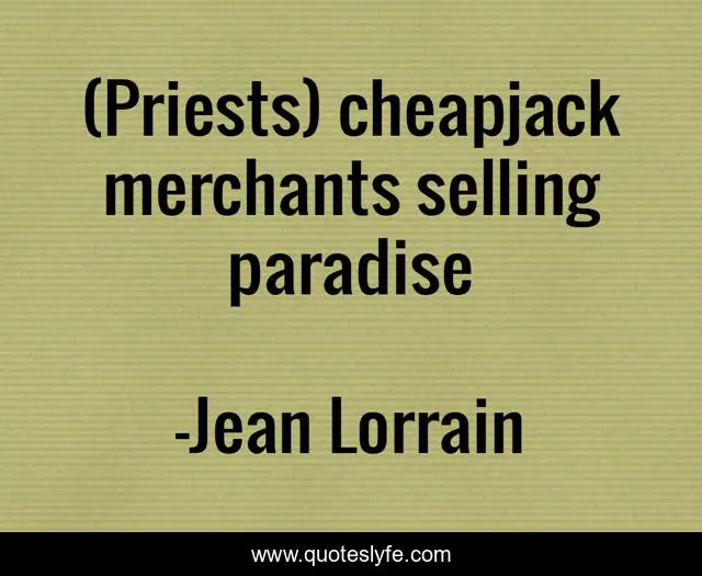 This page presents the quote "(Priests) cheapjack merchants selling paradise". Author of this quote is Jean Lorrain. This quote is about religion, priests,.