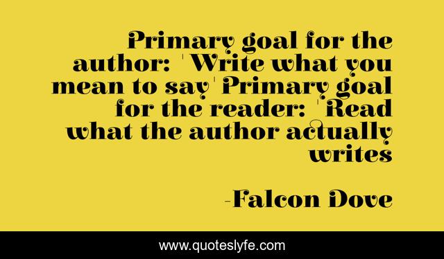 This page presents the quote "Primary goal for the author: 'Write what you mean to say'Primary goal for the reader: 'Read what the author actually writes". Author of this quote is Falcon Dove. This quote is about read, write, authors, readers,.