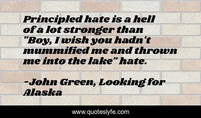 "John Green, Looking for Alaska Quotes." Quoteslyfe.com, 2025. Sat. 06 Dec. 2025. <https://www.quoteslyfe.com/quote/Principled-hate-is-a-hell-of-a-6461>.