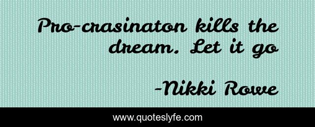 This page presents the quote "Pro-crasinaton kills the dream. Let it go". Author of this quote is Nikki Rowe. This quote is about life, inspirational, daily, quotes, journey, life-lessons, quotes-to-live-by, enthusiasm,.