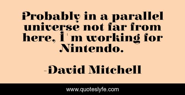 This page presents the quote "Probably in a parallel universe not far from here, I'm working for Nintendo.". Author of this quote is David Mitchell. This quote is about universe, humor,.