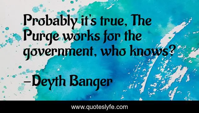 This page presents the quote "Probably it's true, The Purge works for the government, who knows?". Author of this quote is Deyth Banger. This quote is about pruge, true, knows, government,.