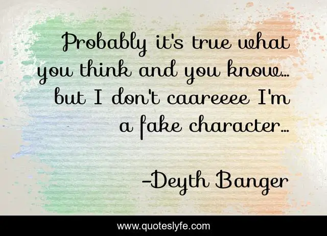 This page presents the quote "Probably it's true what you think and you know... but I don't caareeee I'm a fake character...". Author of this quote is Deyth Banger. This quote is about probably, think, true-what, care,.