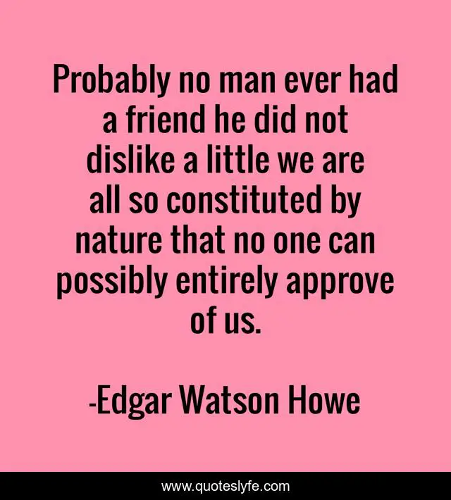This page presents the quote "Probably no man ever had a friend he did not dislike a little we are all so constituted by nature that no one can possibly entirely approve of us.". Author of this quote is Edgar Watson Howe. .