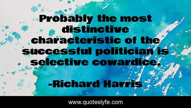 This page presents the quote "Probably the most distinctive characteristic of the successful politician is selective cowardice.". Author of this quote is Richard Harris. .