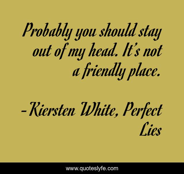 "Kiersten White, Perfect Lies Quotes." Quoteslyfe.com, 2025. Sat. 06 Dec. 2025. <https://www.quoteslyfe.com/quote/Probably-you-should-stay-out-of-my-238267>.