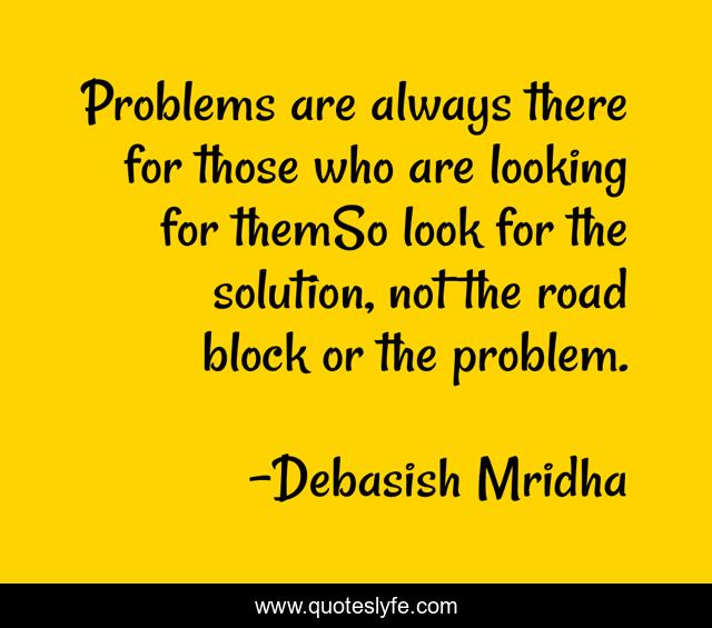 This page presents the quote "Problems are always there for those who are looking for themSo look for the solution, not the road block or the problem.". Author of this quote is Debasish Mridha. This quote is about life, debasish, mridha, philosophy, problems, solutions,.