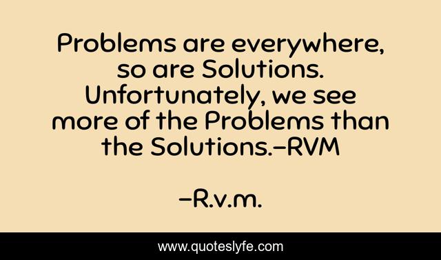 This page presents the quote "Problems are everywhere, so are Solutions. Unfortunately, we see more of the Problems than the Solutions.-RVM". Author of this quote is R.v.m.. This quote is about confidence, positive, motivational, optimistic, inspirational, enthusiasm,.