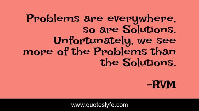 This page presents the quote "Problems are everywhere, so are Solutions. Unfortunately, we see more of the Problems than the Solutions.". Author of this quote is RVM. This quote is about motivation, inspiration,.