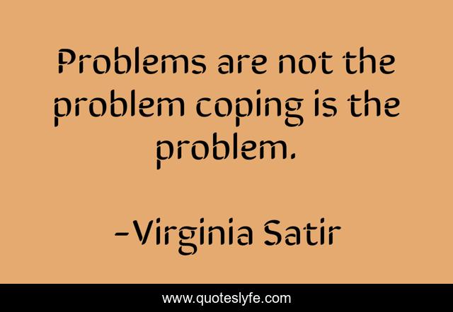 This page presents the quote "Problems are not the problem coping is the problem.". Author of this quote is Virginia Satir. This quote is about coping, problem, problems,.