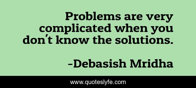 This page presents the quote "Problems are very complicated when you don't know the solutions.". Author of this quote is Debasish Mridha. This quote is about complicated-problems, problems-and-solutions, philosophy, debasish-mridha, quotes, solutions, inspirational, enthusiasm, debasish-mridha-m-d,.