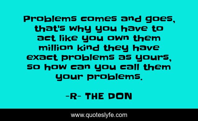 This page presents the quote "Problems comes and goes, that's why you have to act like you own them million kind they have exact problems as yours, so how can you call them your problems.". Author of this quote is R- THE DON. .