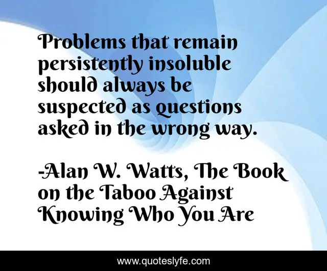 "Alan W. Watts, The Book on the Taboo Against Knowing Who You Are Quotes." Quoteslyfe.com, 2025. Sat. 06 Dec. 2025. <https://www.quoteslyfe.com/quote/Problems-that-remain-persistently-insoluble-should-always-7349>.