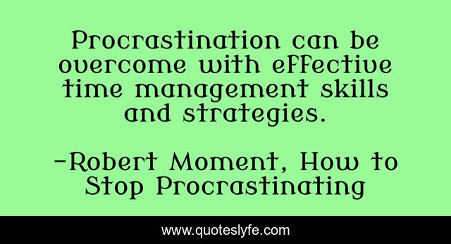 This page presents the quote "Procrastination can be overcome with effective time management skills and strategies.". Author of this quote is Robert Moment, How to Stop Procrastinating. This quote is about time-management, procrastination,.