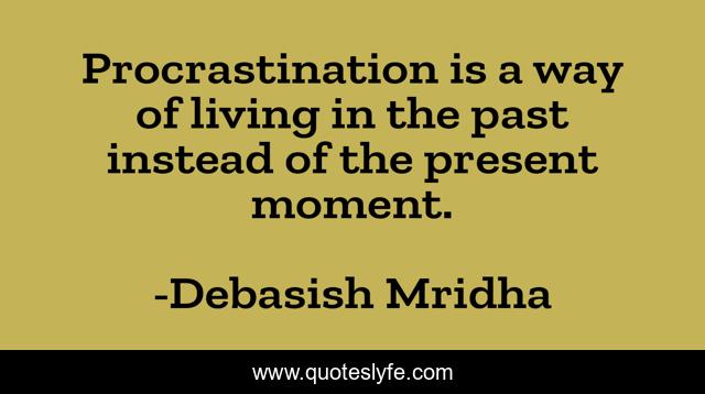 This page presents the quote "Procrastination is a way of living in the past instead of the present moment.". Author of this quote is Debasish Mridha. This quote is about living, debasish, mridha, philosophy, debasish-mridha, past, moment, living-in-the-past, present,.