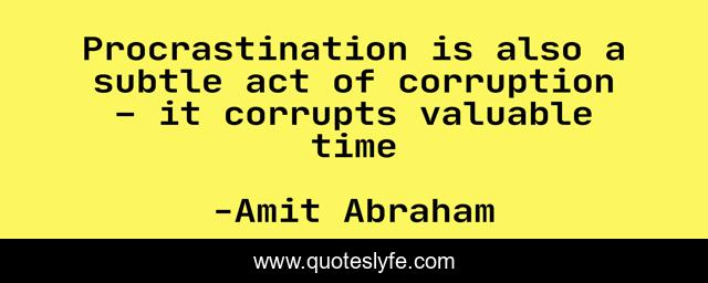 This page presents the quote "Procrastination is also a subtle act of corruption – it corrupts valuable time". Author of this quote is Amit Abraham. This quote is about corruption, procrastination, time,.