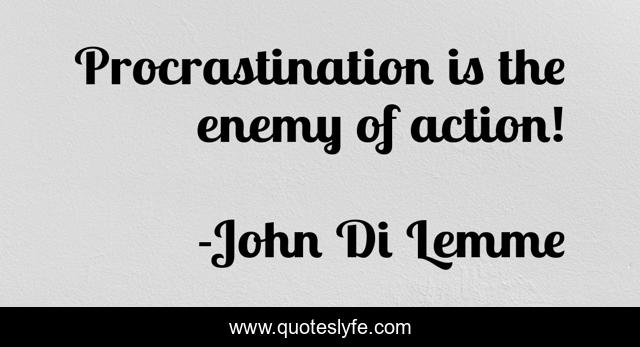 This page presents the quote "Procrastination is the enemy of action!". Author of this quote is John Di Lemme. This quote is about life, successful, positive, motivational, confidence, entrepreneurship, john-di-lemme, optimistic, inspirational,.