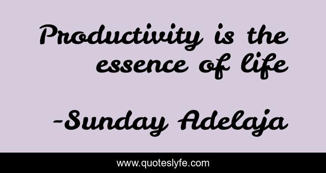This page presents the quote "Productivity is the essence of life". Author of this quote is Sunday Adelaja. This quote is about life, productive, productivity, finance, essence-of-life, money, blessing, job, purpose,.