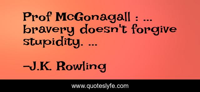 This page presents the quote "Prof McGonagall : ... bravery doesn't forgive stupidity. ...". Author of this quote is J.K. Rowling. This quote is about stupidity, bravery,.