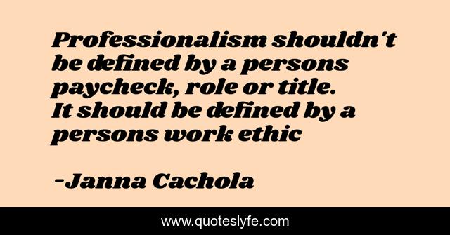 This page presents the quote "Professionalism shouldn't be defined by a persons paycheck, role or title. It should be defined by a persons work ethic". Author of this quote is Janna Cachola. This quote is about professionalism, leadership, team-building, work-ethic,.
