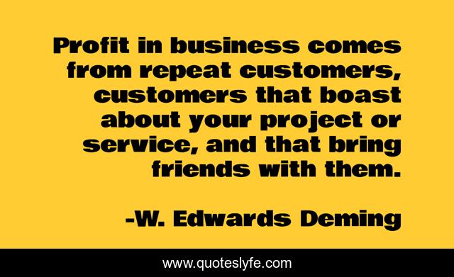 "W. Edwards Deming Quotes." Quoteslyfe.com, 2025. Sat. 06 Dec. 2025. <https://www.quoteslyfe.com/quote/Profit-in-business-comes-from-repeat-customers-281499>.