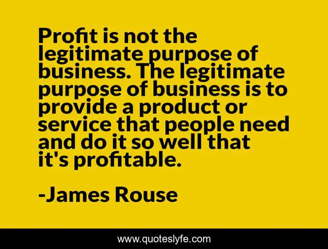 This page presents the quote "Profit is not the legitimate purpose of business. The legitimate purpose of business is to provide a product or service that people need and do it so well that it's profitable.". Author of this quote is James Rouse. This quote is about business, service,.