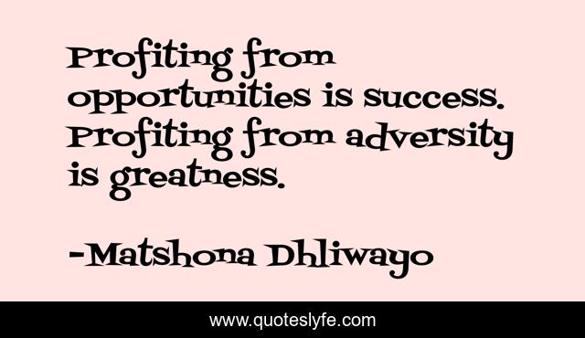 "Matshona Dhliwayo Quotes." Quoteslyfe.com, 2025. Sat. 06 Dec. 2025. <https://www.quoteslyfe.com/quote/Profiting-from-opportunities-is-success-Profiting-from-189998>.