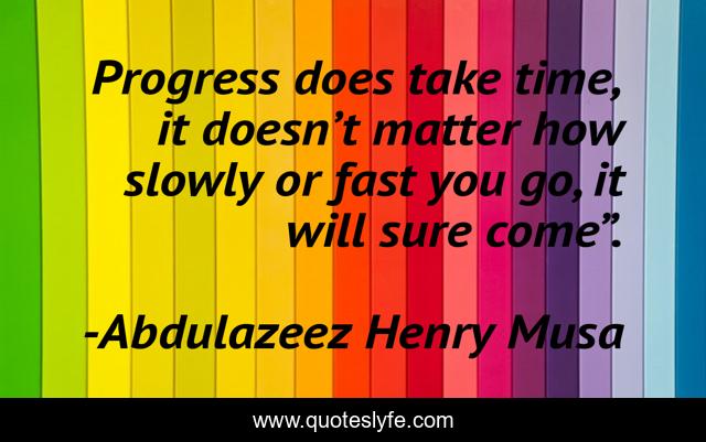 This page presents the quote "Progress does take time, it doesn’t matter how slowly or fast you go, it will sure come”.". Author of this quote is Abdulazeez Henry Musa. .