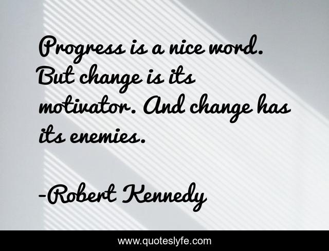 This page presents the quote "Progress is a nice word. But change is its motivator. And change has its enemies.". Author of this quote is Robert Kennedy. This quote is about progress, word, nice,.