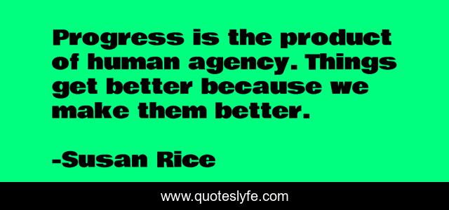 This page presents the quote "Progress is the product of human agency. Things get better because we make them better.". Author of this quote is Susan Rice. .